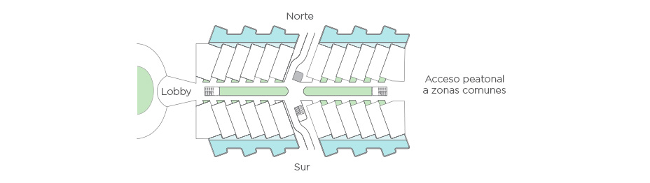 Tipo SUITE A Con un área total construida de 36 m2, con 1 alcobas, 1 zona de parqueos,